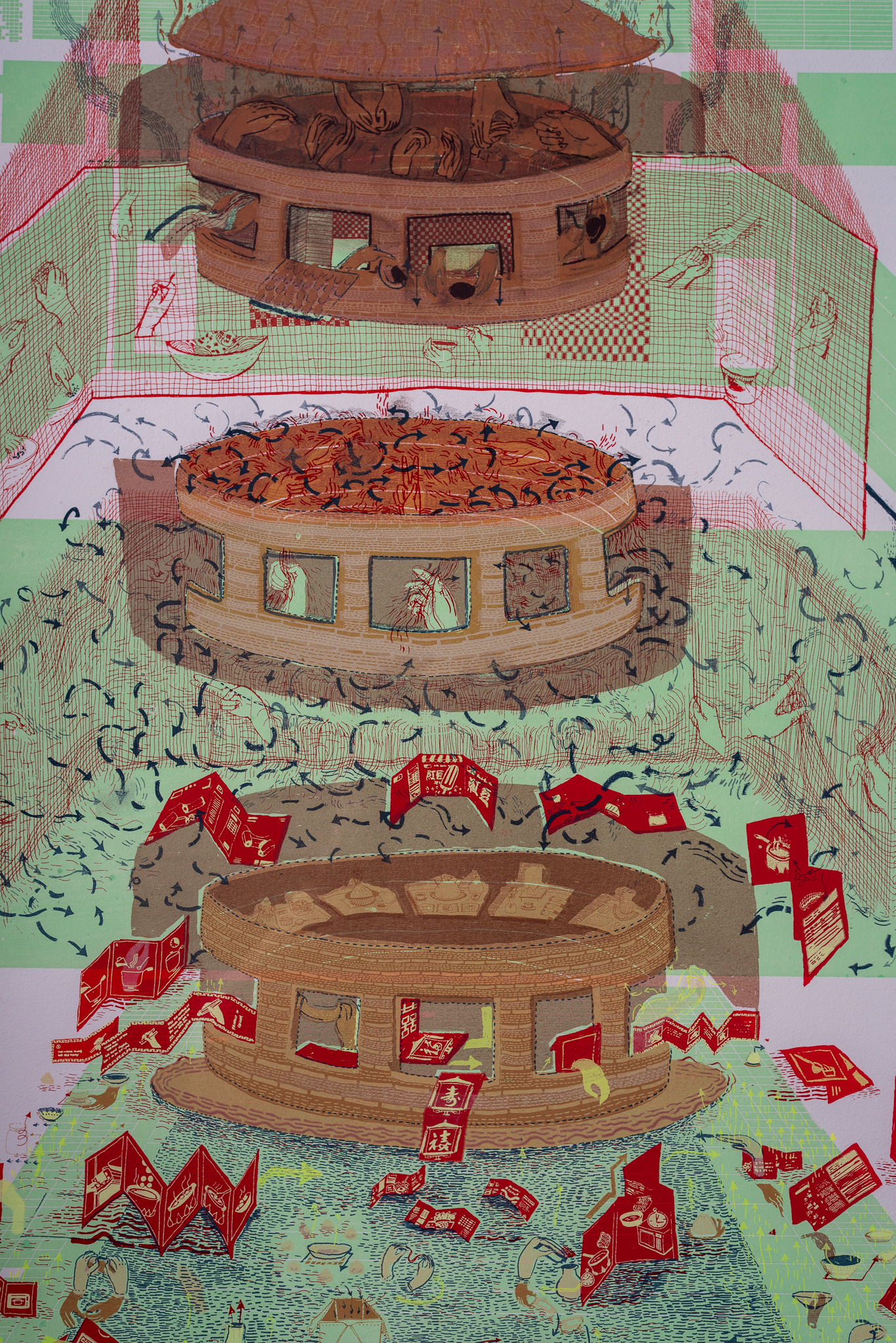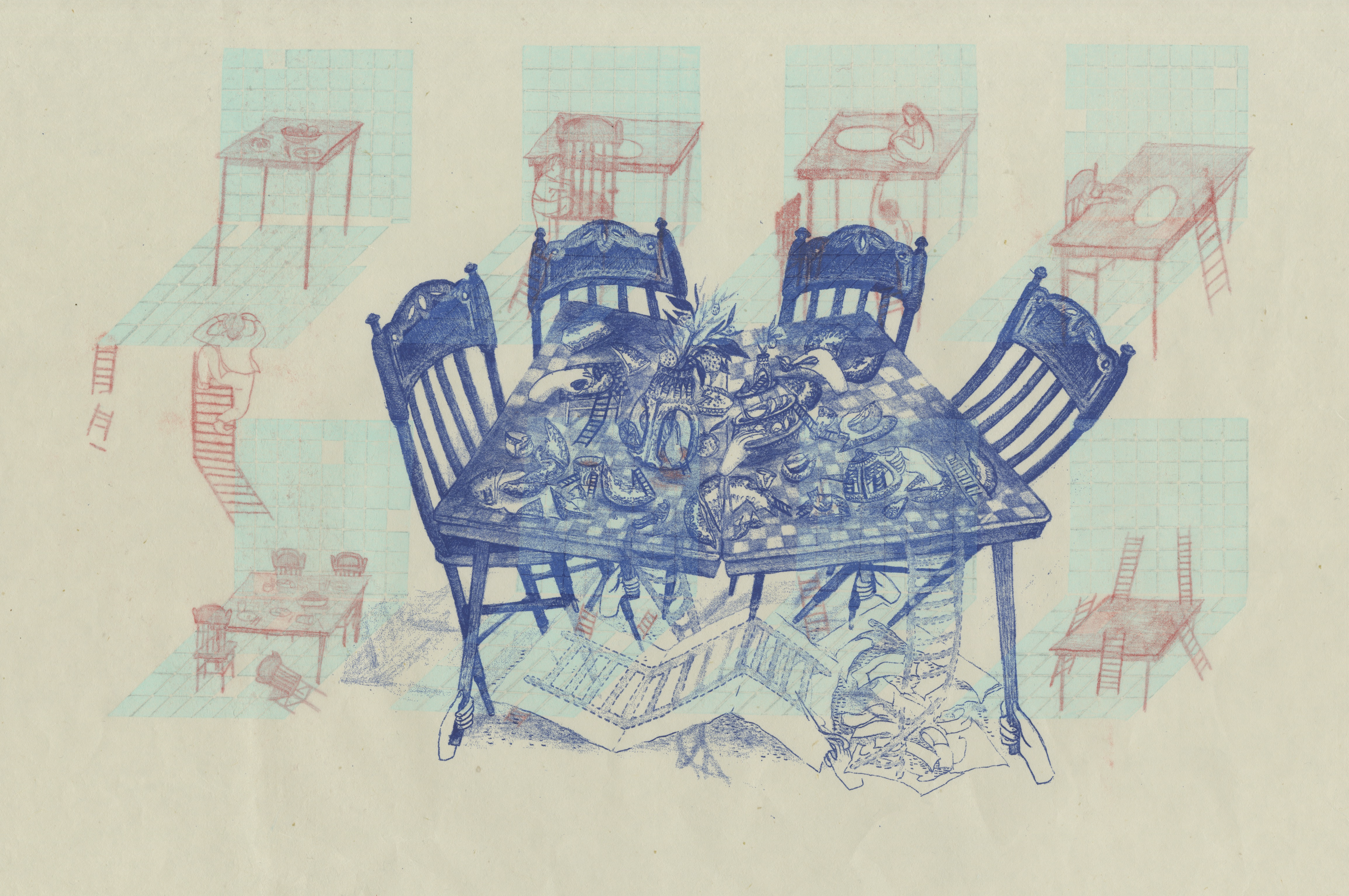 a selection of handpulled prints, risos, and drawings.